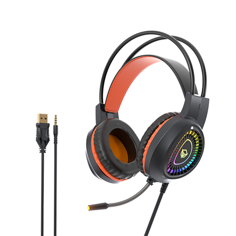 This Gaming headset comes with an ergonomic design with comfortable leather ear covers, clear stereo unit with high sensitivity microphone with Comfortable leather ear covers, Adjustable leather headband, High fidelity sound quality stereo unit Speaker unite Φ40mm, Sensitivity 120±3db, Impedance 32Ω, Frequency 10-20,000Hz. The gaming headset also comes with High sensitivity microphone: Sensitivity-56±2db, Omni-directional. This Headset has an φ3.5mm stereo jack plus a USB interface.
